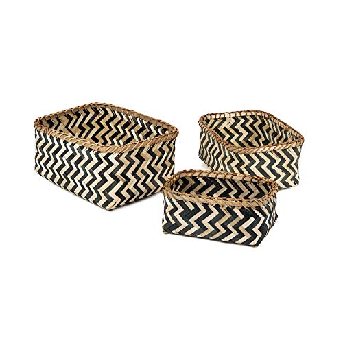 Wald Imports Lot de 3 paniers de rangement décoratifs en bambou Blanc