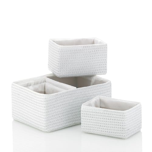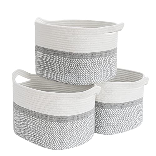 CHICVITA Lot de 3 paniers de rangement en corde de coton pour chambre d'enfant, livres, chaussettes, serviettes, couvertures, gris