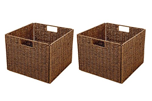 Trademark Innovations Lot de 2 paniers de rangement pliables en jacinthe avec cadre en fil de fer Naturel