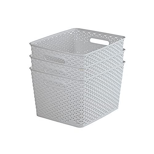 Relaxdays Lot de 3 paniers de Rangement, corbeilles en 3 Tailles, tressés, Salle de Bain, Plastique, Blanc