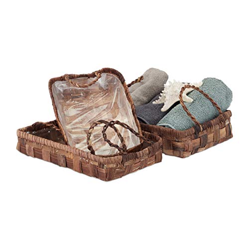 Relaxdays 10024172 3x Paniers de Rangement Corbeilles Tressées Boîtes Empilables Anses Étagère Film Transparent 3 Tailles Nature, Plastique, Standard