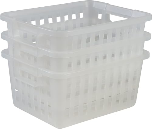 Iris Ohyama, Lot de 3 paniers de rangement, 11.6 L- Empilable - L25.5 x l32.5 x H15 cm - Transparent