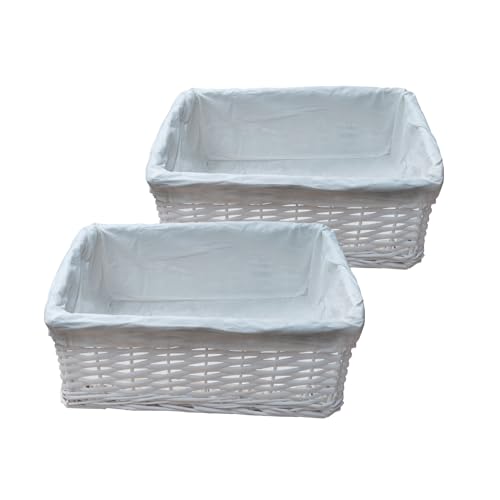 ARPAN Lot de 2 paniers de rangement en osier blanc 100% écologique avec tissu Taille M 36 x 25 x 15 cm