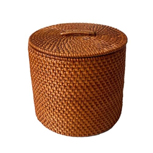 Corbeille À Déchets En Osier Corbeille À Déchets En Rotin Avec Couvercle 9x11 Pouces Poubelle En Osier De Style Simple Avec Couvercle Paniers À Linge Ronds Tissés Pour Chambre À Coucher, Salon Et