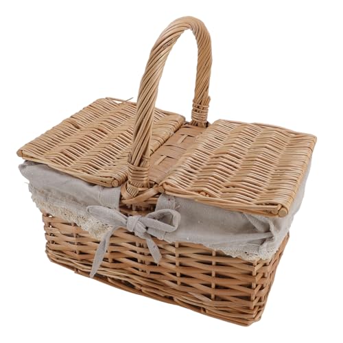 Panier de Pique-Nique avec Couvercle, paniers en Osier avec poignées et Doublure en Dentelle en Tissu pour la Collecte de Bonbons aux Fruits, Pique-Nique Mariage, Vie en Plein air.