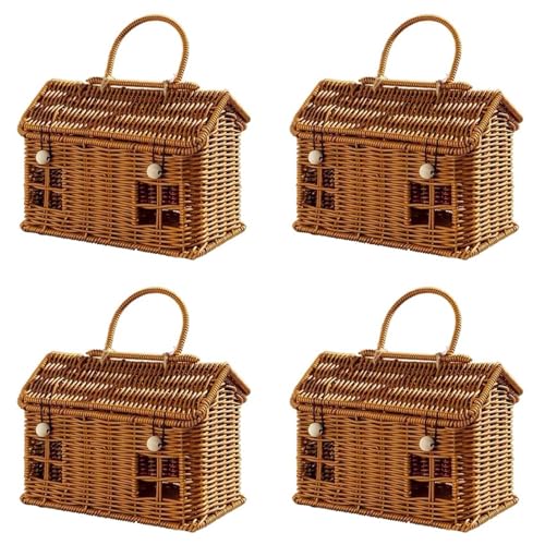 Buhdjfnke Panier en rotin en forme de maison avec couvercle, organisateur d'étagère décoratif tissé à la main avec paniers pliants en osier