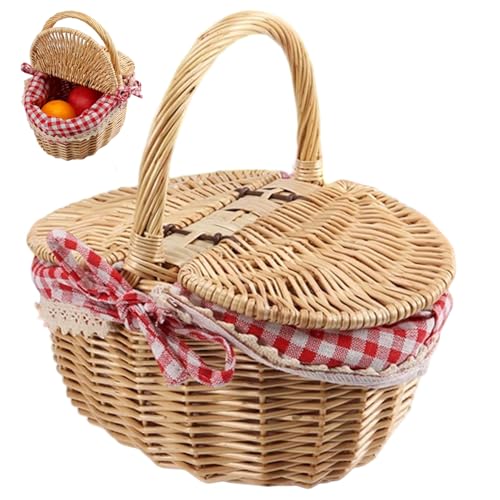 Hotainoys Panier de Pique-Nique avec Couvercle, paniers en Osier avec poignées et Doublure en Dentelle en Tissu pour Fruits, Bonbons, Rassemblement, Mariage, Mini Panier de Pique-Nique