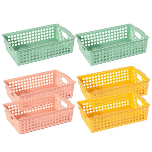 GARVALON Lot de 6 Paniers de Rangement Creux en Plastique Coloré avec Poignées Latérales Mini Bacs Drainants pour Organiser Bureau la Cuisine Salle de Bain et Dressing
