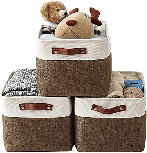 GY-honeq Paniers de Rangement en Tissu, Grande Capacité, Toile Corbeille de Rangement Pliable, Conception géométrique et poignées Cuir PU pour Armoire, Dressing (Couleur -6, 3 pièce)