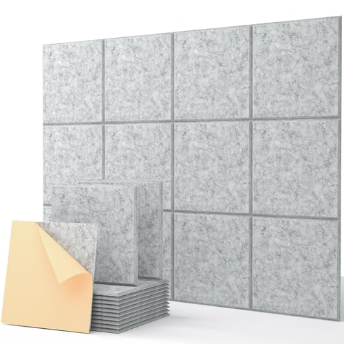 Lot de 12 Panneaux Acoustique Autocollants Carrées, Anti bruit Panneaux Acoustiques Haute Densité Isolant Phonique Pour Mur, Plafond et Porte - Panneau Acoustique - Plaque Acoustique (30×30×0,9cm)