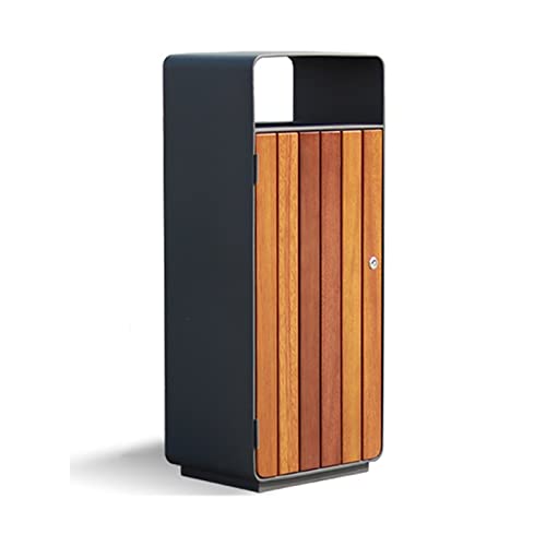 Poubelle extérieur Poubelle en acier durable avec panneau en bois, baril intérieur en acier galvanisé, poubelle simple de grande capacité avec couvercle supérieur for une utilisation en extérieur Bacs