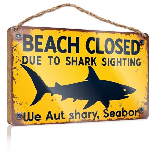 Panneau de porte de bureau personnalisé avec observation de requins près des plages - Panneau en bois d'extérieur à suspendre (15 x 28 cm)