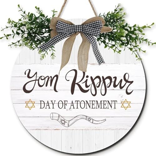 Horienteeon Panneau en bois Happy Yom Kippour - Décoration de porte d'entrée - Pour porte d'entrée, porche, intérieur et extérieur - Décoration murale de cuisine Yom Kippour - 30 cm