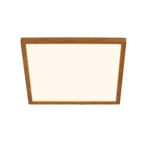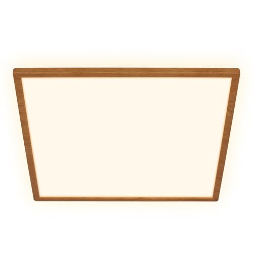 BRILONER - Plafonnier LED à lumière indirecte, plat, lumière blanche chaude, lampe LED, plafonnier, lampe de salon, panneau, cuisine, chambre, 42x42x3 cm, cadre aspect bois