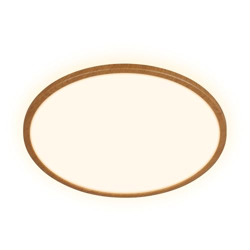 BRILONER - Plafonnier LED à lumière indirecte, plat, lumière blanche chaude, lampe LED, plafonnier, lampe de salon, panneau, cuisine, chambre, 29x3 cm, cadre aspect bois