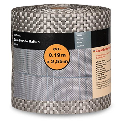 NOOR Bande Brise-Vue en rotin pour clôture Double Fil - Film de clôture chromé - 0,19 x 2,55 m - Panneau de clôture perméable au Vent - 830 g/m² - Résistant aux intempéries et aux UV - en 100% rotin