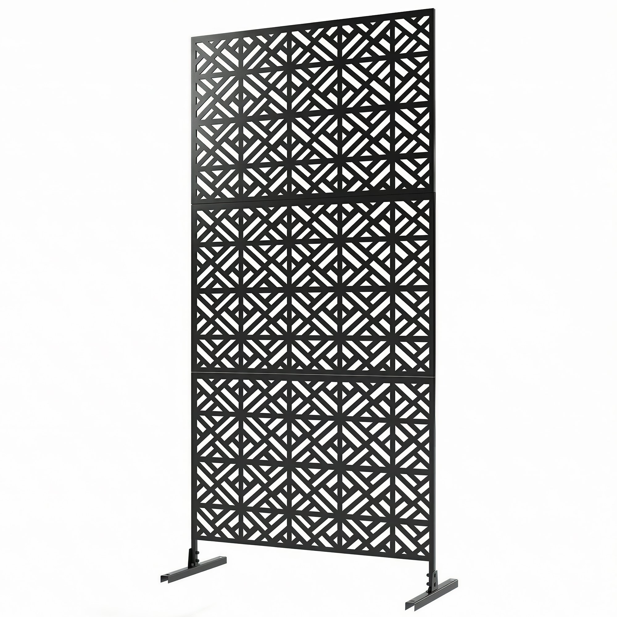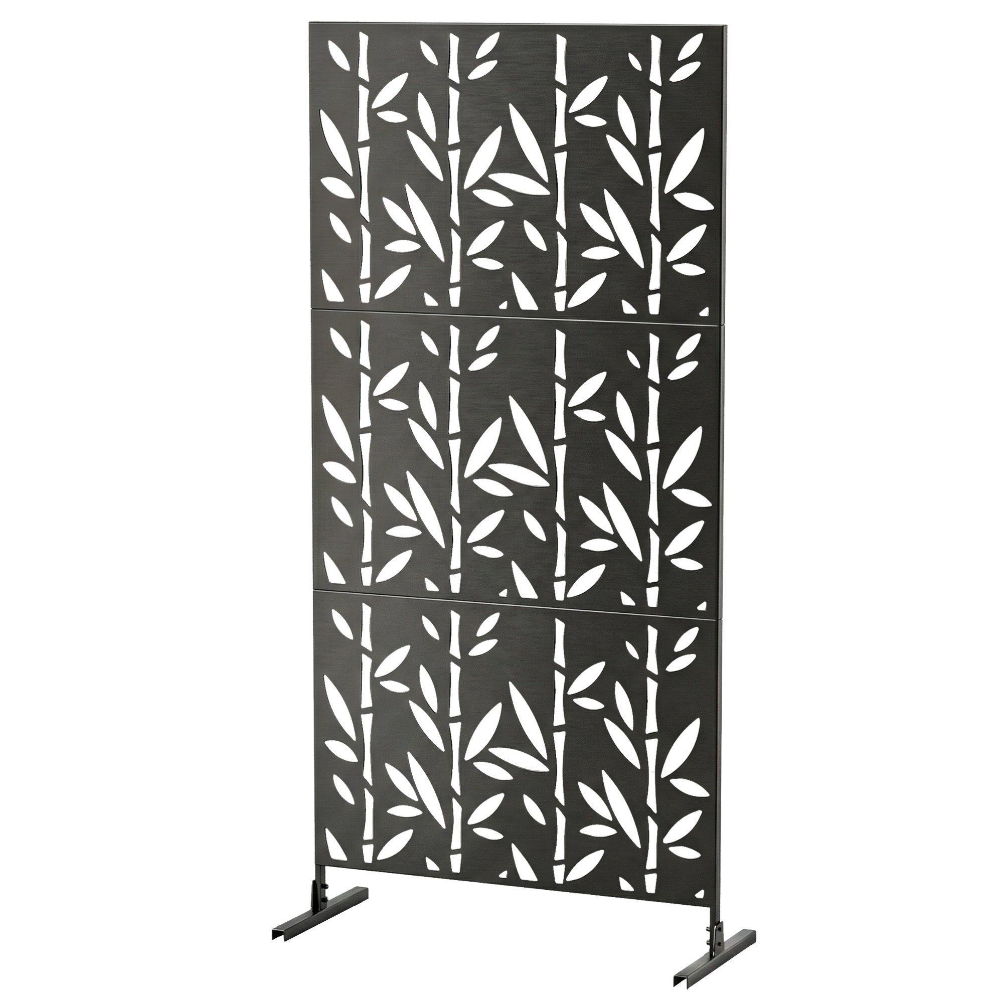 Panneau brise vue décoratif - paravent extérieur - motif végétal en métal - 122 x 45 x 198 cm - noir