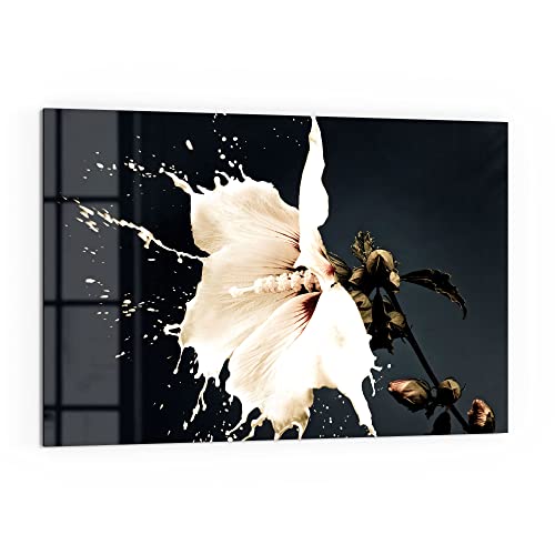 DEQORI Panneau de crédence de cuisine en verre - Motif fleur laiteuse - 60 x 40 cm - Pour salle de bain ou cuisinière - Protection anti-éclaboussures pour cuisine et salle de bain - Décoration moderne