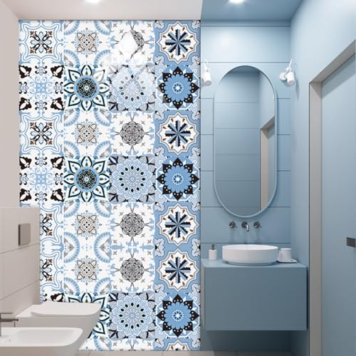 Carrelage Salle de Bain Mandala Bleu Noir Credence Adhesive Pour Cuisine Dalle Pvc Adhesive Murale Autocollant Cuisine Autocollant Carrelage Panneau Mural Salle De Bain Pvc 20x20cm/10 Pcs