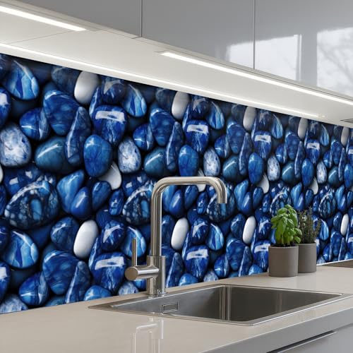 KitchenYeah© Credence Adhesive Pour Cuisine 80x250 cm Panneau Mural Adhesif Fond De Hotte Plaque Pvc Murale Peel And Stick Protege Mur Luxe - Bleu - Marbre - Pierres