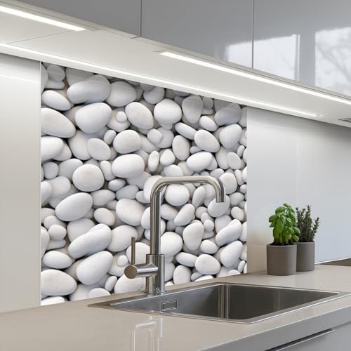 KitchenYeah© Credence Adhesive Pour Cuisine 60x100 cm Panneau Mural Adhesif Fond De Hotte Plaque Pvc Murale Peel And Stick Protege Mur Blanc - Galets - Lisse
