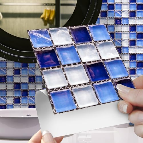 Targawerelax Mosaïque Stickers Carrelage Adhesif Mural Cuisine Salle De Bain, Credence Adhesive, Panneau Mural Decoratif Adhesive Murale, Stickers Muraux Autocollant, pierre précieuse bleue blanche