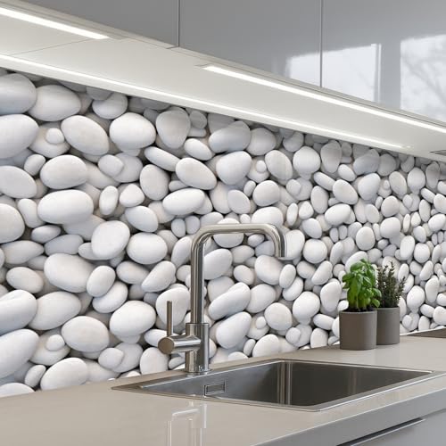 KitchenYeah© Credence Adhesive Pour Cuisine 60x500 cm Panneau Mural Adhesif Fond De Hotte Plaque Pvc Murale Peel And Stick Protege Mur Blanc - Galets - Lisse