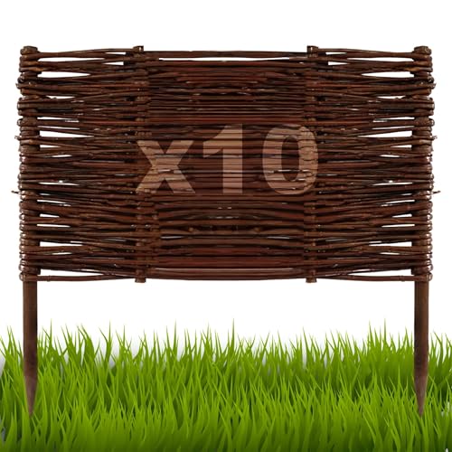 Floranica Bordures de Parterre en Saule Lot de 10 pièce 20 cm x 40 cm Clôture en Bois de Osier pour Bordure Plate-Bande Palissade Bordures de Fleurs Décoratives Panneau en Saule