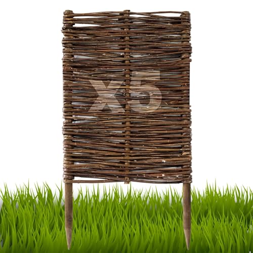 Floranica Bordures de Parterre en Saule Lot de 5 pièce 60 cm x 30 cm Clôture en Bois de Osier pour Bordure Plate-Bande Palissade Bordures de Fleurs Décoratives Panneau en Saule