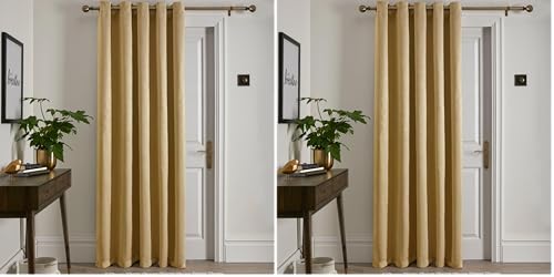 Fusion Rideau de Porte à œillets Ocre - 66 x 84 cm (168 x 214 cm) - Panneau Simple - Doublure Thermique - Jaune - pour Chambre à Coucher ou Salon - Collection Strata - Accessoire d'intérieur Moderne