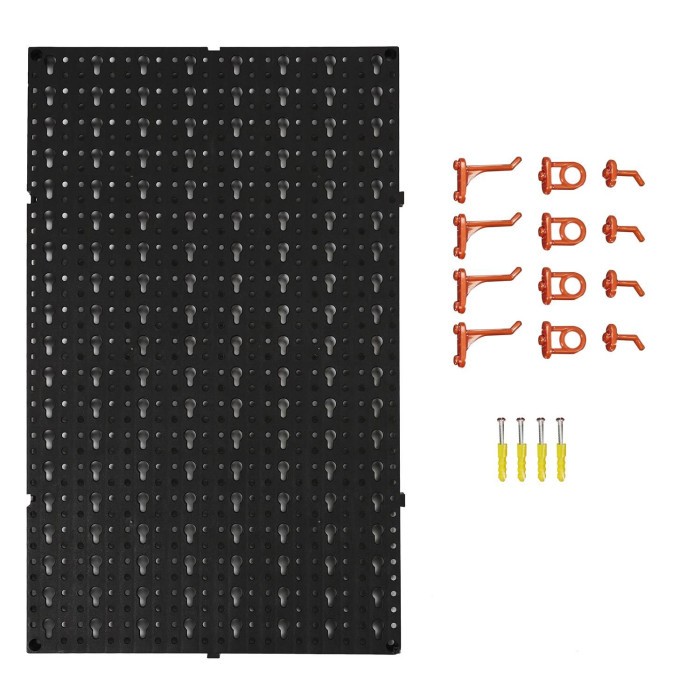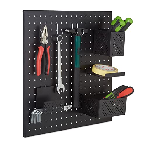 Relaxdays Panneau perforé, système de rangement pour outils, H x L : 45 x 45 cm, en lot de 9 accessoires, couleur noir