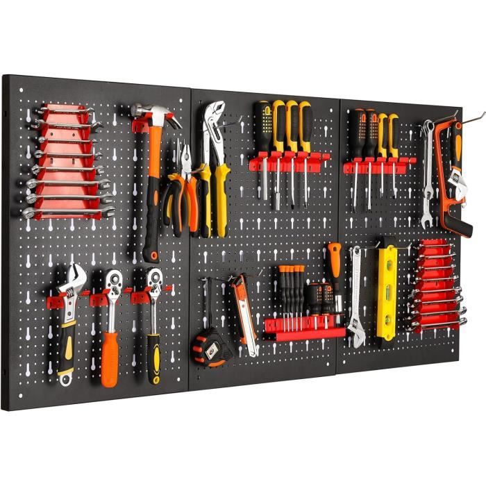 Panneau perforé mural en métal, 120 x 50 cm, panneau de rangement pour outils, accessoires et fournitures d'artisanat Noir