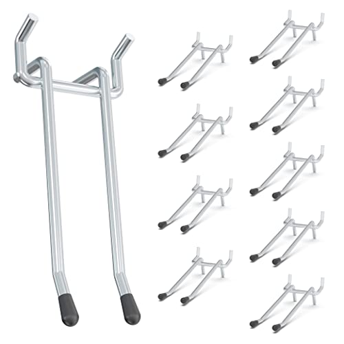HUHOLE Lot de 10 crochets à double bras de 10,2 cm pour panneau perforé de 6,35 mm, crochets utilitaires idéaux pour l'organisation du garage, le rangement mural, support à outils robuste avec embout