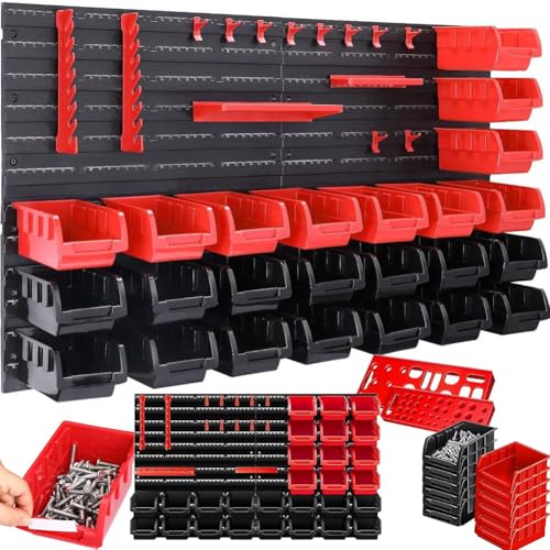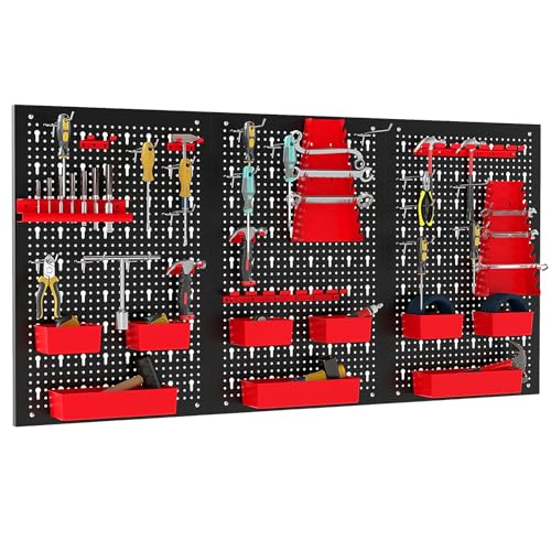 COSTWAY Organiseur Mural en Panneau Perforé, Rangement d'Outils en Métal avec 3 Panneaux 34 Accessoires de Suspension, Porte-outils à 9 Bacs Fixé au Mur, pour Garage Atelier Entrepôt, Noir + Rouge