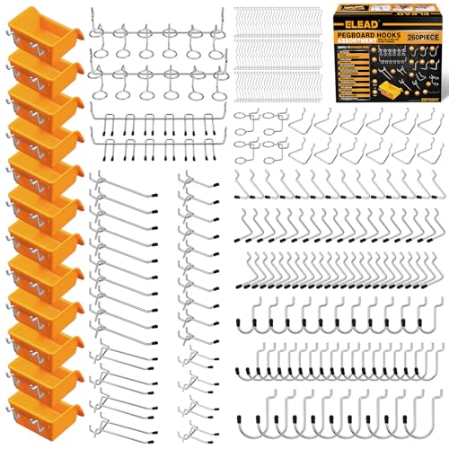 ELEAD Kit de 260 crochets pour panneau perforé, accessoires de rangement pour panneau perforé, accessoires pour organiser divers outils dans le garage, la cuisine, la salle de bain et l’atelier