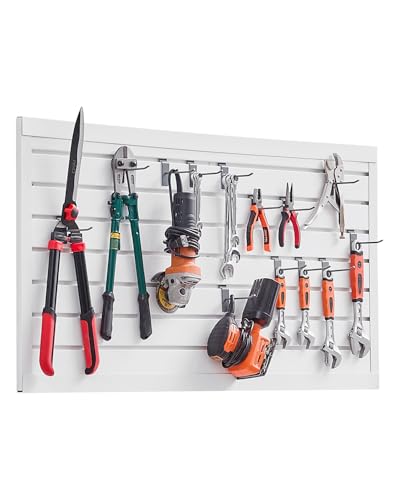 VEVOR Panneau à Lattes Mural Garage, 1225 x 645 mm, Panneau Rangement Outils en PVC avec Conception Modulaire, Porte-outils Muraux pour Affichage, Organisation, Stockage, Atelier, Artisanal, Blanc