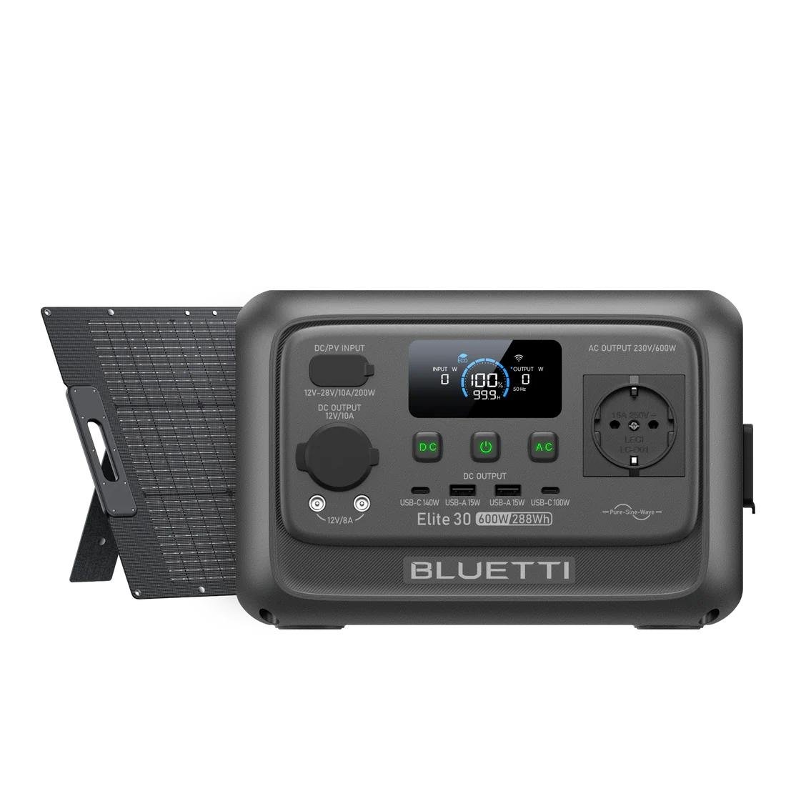 BLUETTI Elite 30 V2 + 100W Panneau solaire Réservoir solaire 600W / 288Wh Station de puissance portable Générateur solaire Batterie pour voyage/camping-car/à la maison/voyage en voiture