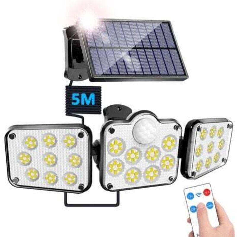 3 Têtes Lumière Solaire Extérieure avec Détecteur de Mouvement, 138LED Séparable Panneau Solaire Projecteur avec Télécommande, pir Lumiere Solaire
