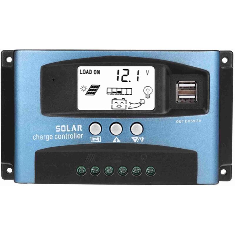 Contrôleur de Charge de Panneau Solaire, Double Sortie USB 3 Régulation PWM Protection de Circuit Multiple Régulateur de Charge Photovoltaïque, Charge Intelligente pour La Maison 12V 24V(30A)
