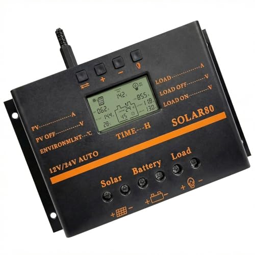 Fuhuihe Solaire Régulateur de Charge Solaire 80A PWM 12V 24V 1920W Régulateur de Décharge de Panneau Solaire avec Sortie USB 5V Protection de Circuit Multipoint Anti-Fall Durable ABS