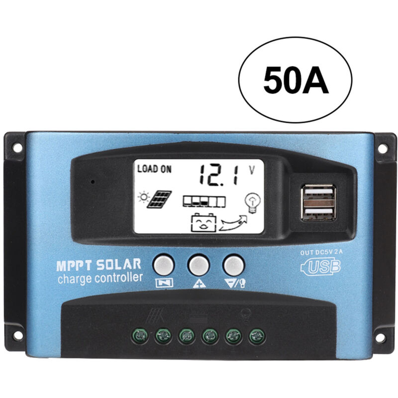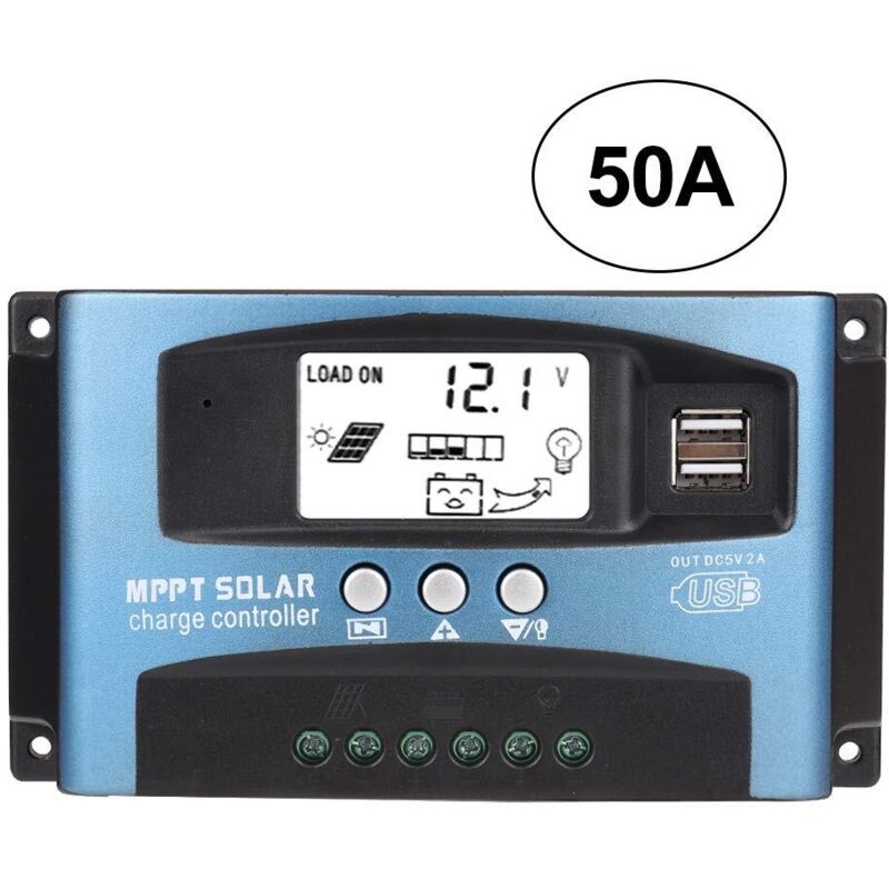 Contrôleur de Charge Solaire MPPT 50A, Régulateur de Batterie Intelligent de Contrôleur de Regulateur Panneau Solaire USB 12V 24V avec écran LCD