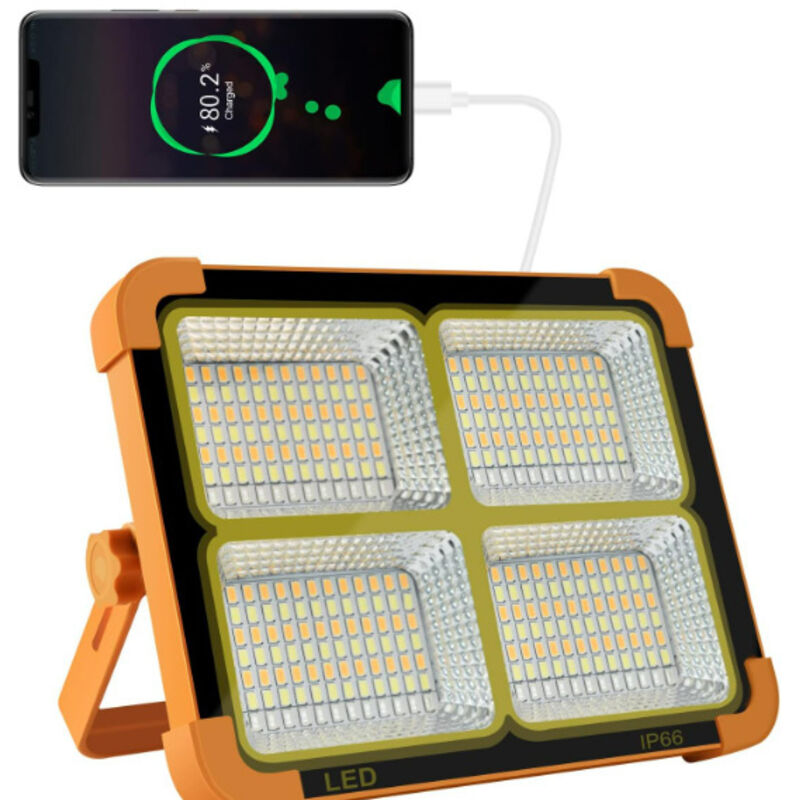 Projecteur Led Rechargeable 100w 10000lm, Lumière De Travail Lanterne Portable Avec Panneau Solaire, 8000 Mah Usb Lampe Rechargeable, Pour Camping,