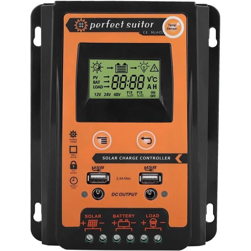 Contrôleur de Charge Solaire mppt 100A, Régulateur de Batterie Intelligent de Contrôleur de Regulateur Panneau Solaire usb 12V 24V avec écran lcd
