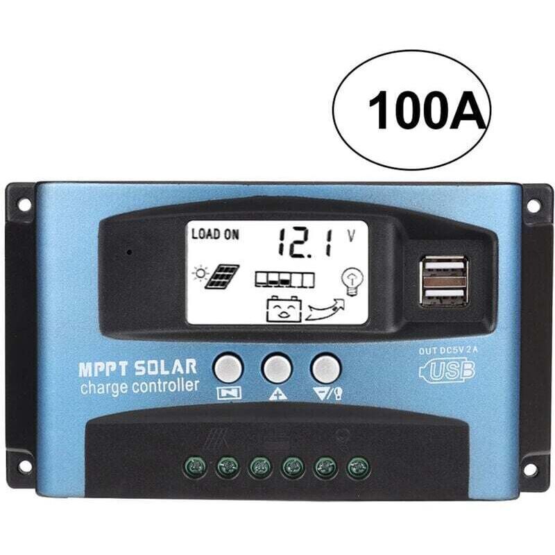 Contrôleur de charge solaire 100 a, régulateur de panneau solaire usb 12 v 24 v, régulateur de batterie intelligent avec écran lcd (100 a)