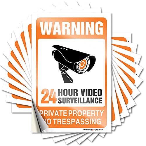 Lot de 10 autocollants amusants pour voiture avec panneau de surveillance vidéo 24 heures (6 x 9 cm)