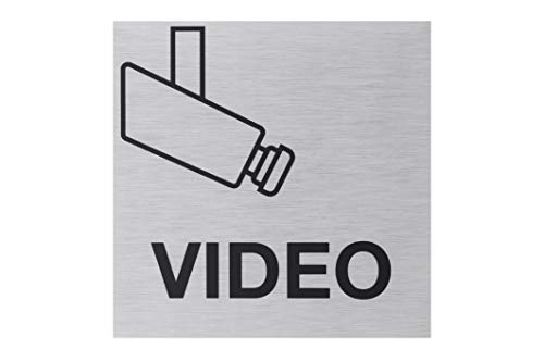 Metafranc 507130 Panneau adhésif « Video » 80 x 80 mm – En aluminium – Aspect acier inoxydable moderne – Dos autocollant – Panneau d'information – Surveillance vidéo – 507130