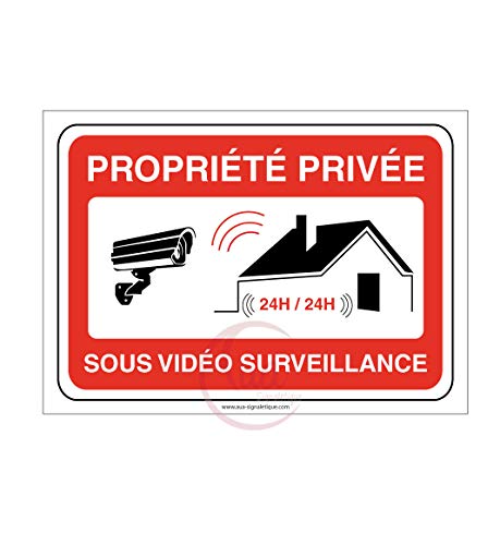 AUA SIGNALETIQUE - Panneau propriété privée sous alarme vidéo surveillance 24H /24-210x300 mm, PVC 1.5mm