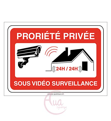 AUA SIGNALETIQUE - Panneau Propriété privée sous surveillance vidéo accès interdit - 300x420 mm, PVC 1.5mm