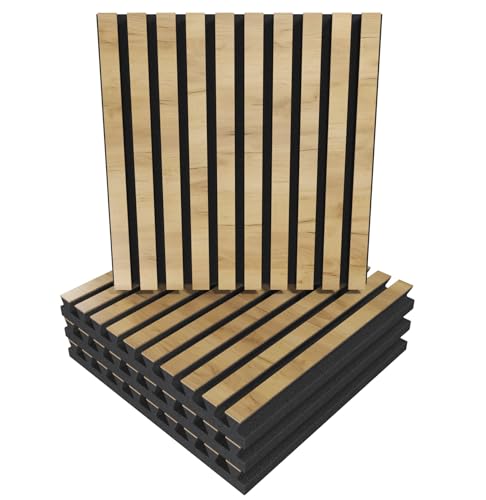 Lot de 4 panneaux acoustiques à lattes absorbants et diffusants | 50x50x5 cm | Absorption - Diffusion - Réflexion - Correction acoustique | Plaques de couleurs : [x4 POLE | Chêne]
