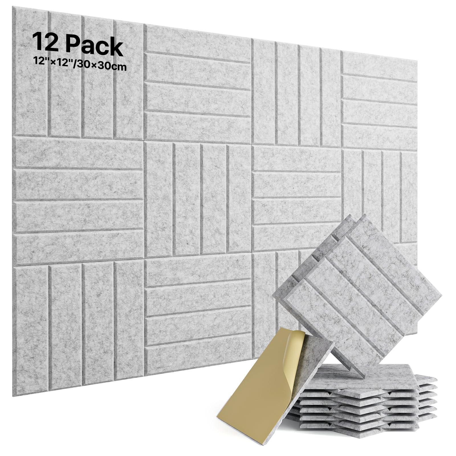 Soundsbay Panneaux acoustiques autocollants 12 pièces, absorbeur de son, protection acoustique, protection phonique murale à haute densité, plaques de protection acoustique pour le traitement